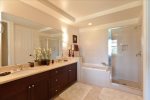 Beyond the living room is the balcony lanai overlooking the fairway with table and chairs for sharing a sunrise breakfast or enjoying a tropical drink before dinner. Both the master and guest bedroom feature California King beds, and 32' HDTV's with cable. The loft includes two twin beds, and reading nook. All three rooms include iHome music players. The master suite adjoins a spacious bathroom with two separate sinks, oval soaking tub and walk-in glass shower, seperate walk-in closet and commode room allowing for plenty of roominess. You can also bring your laptop with you as secure, wireless high speed internet is available for your use.