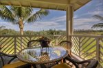Waikoloa boasts two championship Robert Trent Jones golf courses, and the lanai features sweeping views of the beautiful Waikoloa Beach Golf Course and Mauna Kea mountains in the distance. Our villa features new designer furniture, appliances, linens and fully equipped gourmet kitchen. From the moment you enter the door you'll be captivated by a view from the balcony lanai of palm trees swaying on the lusciously green fairway of the Waikoloa Beach course. The kitchen includes granite slab countertop and cherry wood cabinets. Seating for 6 dining table and bar stools provide ample seating for meals and the living room features a comfortable couch, loveseat, plus 40' flat screen HDTV with Blu-Ray DVD and WiFi capability to stream in Net Flicks, and many other entertainment options.